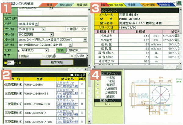 Stemに準拠した設備機器の仕様情報は、建設業振興基金によるStemデータ配信サービスから入手したり、設備機器メーカーから提供されるCD-ROM等によって入手したりすることができます。
