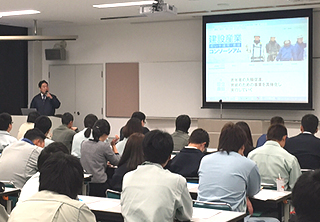 (一社)山口県建設業協会は山口県内の産官学連携となる地域連携ネットワーク事務局として、平成27年度から30年までの3年間、専門工事業団体と連携して、若年技術者及び技能者への研修・サポート・定着率向上を目的とした各種活動を実施します。第1回目は建設業入職3年以内の新規入職者及び30歳未満の若年者を対象とした合同研修を開催しました。