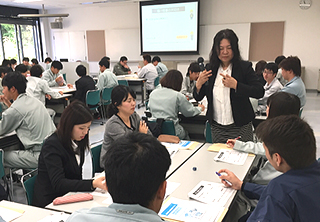 続いて吉本興業主宰の社会人塾講師等多数の経験がある(株)日本マンパワー井手秋子氏を講師に迎え、「建設業における社会人としてのマナー講座」を行いました。社会人としてのマナーや心構え、組織内でのコミュニケーション、仕事の進め方などについて学びました。また、全産業的にも離職率が高くなっていることから、長く働き続けるためのアドバイスも頂きました。