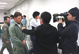 当日は、各団体からパネルや安全用品の展示もありましたが、NHKによるテレビ取材、日刊建設工業新聞社、日刊建設通信新聞社、中建日報社の新聞社も3社駆けつけ、大きくマスコミ報道もされました。