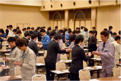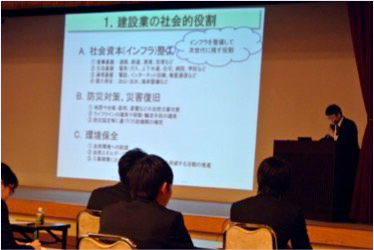 地域連携ネットワークの取組として、連携先の専門工事業団体等の新入社員を従前行っていた(一社)群馬県建設業協会の新入社員研修に参加させることで、新人技能者に広く建設業の知識やビジネスマナー等を身につけてもらう、特に、あいさつや声掛け、名刺交換のやり方などを最初はぎこちなくも、動きを交えて学ぶことでさらに身になったものと思われる。受講者10数人が交代で講師の紹介や「起立・礼・着席」の号令を行うなど、講師側にとってもよそでは体験しないことであり、新鮮な雰囲気で研修に臨めたということであった。